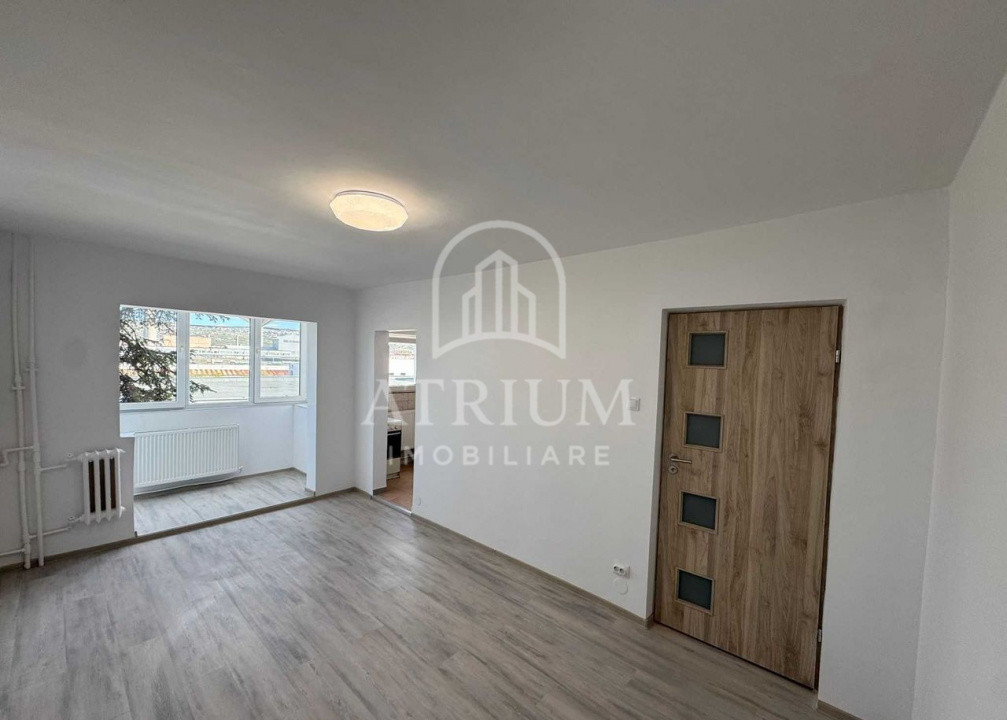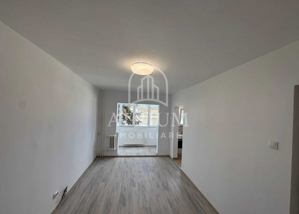 Recent renovată, compartimentată astfel: bucătărie separată, cameră spațioasă (extinsă cu balcon închis cu termopan), hol și baie.