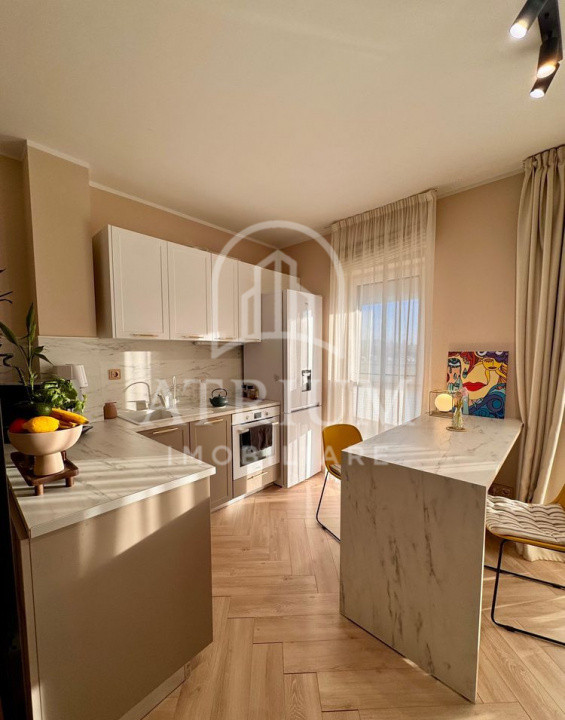 Vă propunem spre vânzare apartament cu 1 cameră în zona Vivo – Oncos, aproape de VIVO! Cluj-Napoca. Proprietatea are o suprafață de 41 mp și este situată la parter, într-un imobil modern cu finisaje de calitate. Bucătăria este open-space, cu posibilitate de închidere în sticlă, în funcție de preferințe. Apartamentul este dotat cu electrocasnice moderne, inclusiv cuptor și plită cu inducție, beneficiază de centrală pe bloc și încălzire în pardoseală.