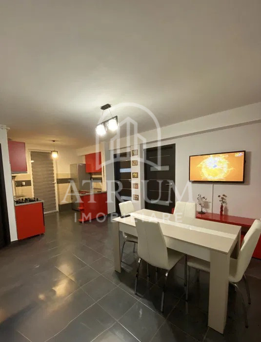 Va propunem spre inchiriere un apartament cu 3 camere, semidecomandat, situat in Cluj-Napoca, pe str. Fagului , situat in cartierul Buna ziua, la etajul 1 al unui imobil cu un regim de inaltime P+4E. Apartamentul dispune de o suprafata utila de 60mp si este alcatuit din 2 dormitoare, living, bucatarie, baie, hol cu dressing. Apartamentul se inchiriaza complet mobilat si utilat, de asemenea, la intrare este usa metalica, ferestrele sunt cu tamplarie PVC si geamuri termopan, iar incalzirea se face prin centrala proprie cu distributie prin calorifere. ID: P259074