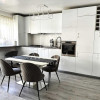 Se vinde la cheie exact cum se poate observa in poze, dotat cu: frigider, aragaz, cuptor electric, hotă, centrală termica proprie, masina de spalat vase, mașină de spălat rufe, cafetiera si smart TV.