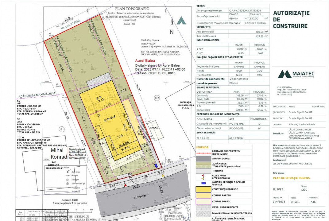 Detine autorizatie de constructie pentru casa tip duplex cu doua unitati locative.